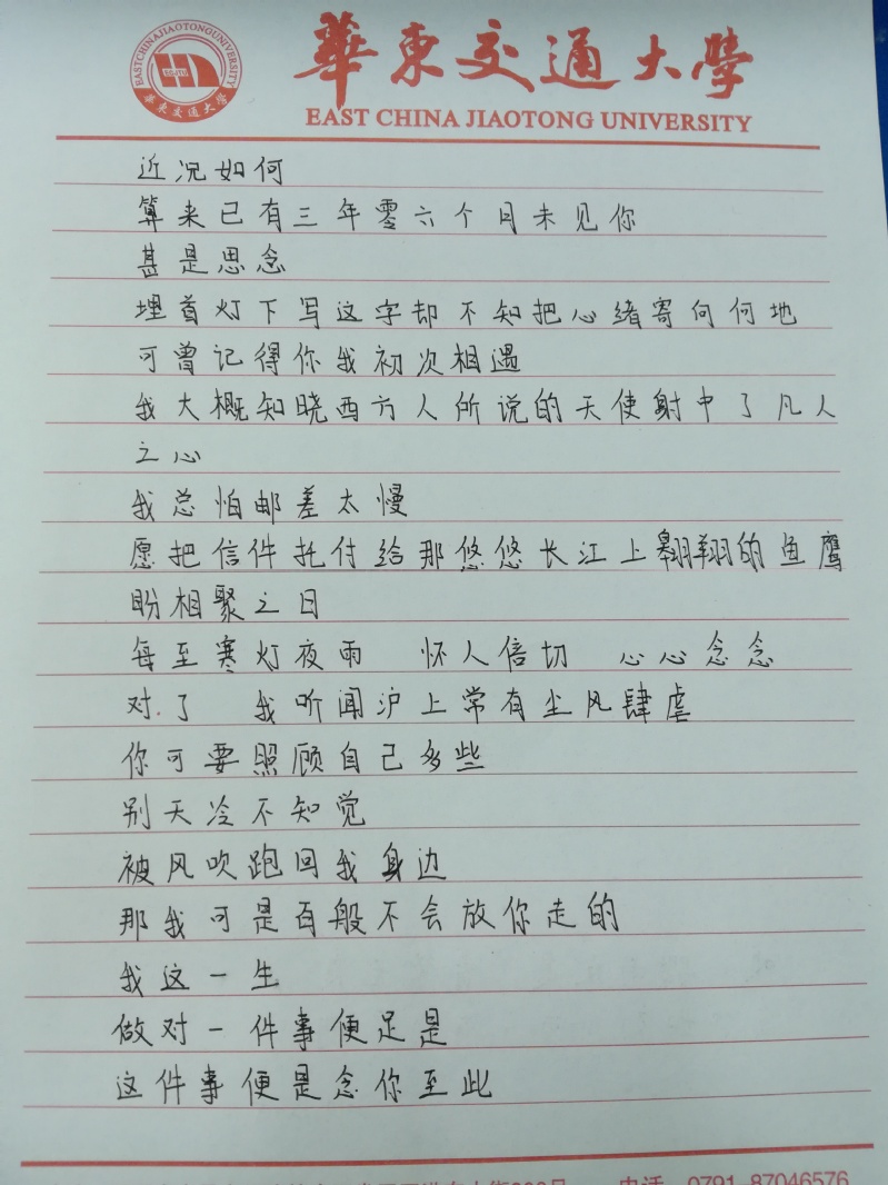 一字一句的感激与祝福从笔尖流露,一声声思念的问候在信纸跳跃。家书是亲人之间沟通的桥梁,是中华传统文化的重要载体。举办“家书礼”就是希望在网络通信的快速发展的今天,用传统家书的传承中国传统文化中“孝”文化的本质。在将家书收齐后,机电学院将选择“驿寄梅花、鱼传尺素”这一古老却充满温情色彩的方式,将承载着对父母感恩之情的书信寄往了祖国的大江南北。