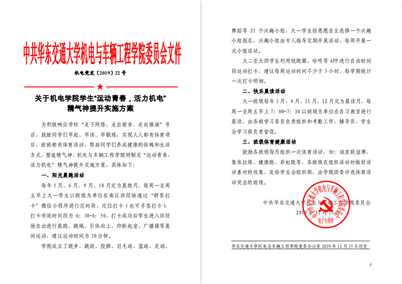 青春在于运动,运动成就青春。为响应学校号召,做好“走下网络,走出宿舍,走向操场”主题活动,帮助青年学生远离网络负能量,积极参加锻炼,增强学生体质。在机电学院第十六届火红年华科技文化艺术节上,8827太阳集团党委委员金晶宣读了《关于机电学院学生“运动青春,活力机电”精气神提升实施方案》,积极鼓励当代青年大学生早起、早读、早锻炼。不仅学习上要努力,运动上也不能松懈。